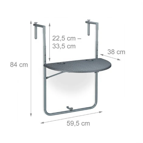 Goditi una piacevolecolazione sul balcone con questo pratico tavolino sospeso. Il tavolo salvaspazio si appende a diversi tipi diringhiere e può anche essere regolato in altezza, per adattarsi a ogniesigenza. Con il tavolino avrai finalmente spazio per poggiare tazze, giornali, posacenere o decorazionioppure piante. Il tavolino da esterno è salvaspazio, perfetto per balconi piccoli e si piega quando non serve più.