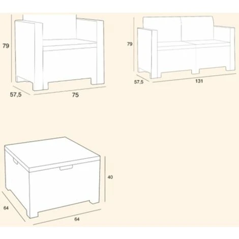 Set Nebraska, salotto da giardino in polipropilene finitura rattan per 4 persone composto da: 2 poltrone con schienale alto e dergonomico,1 sofa 2 posti, 4 cuscini, 1 tavolino. Poltrona 79x57x75cm Divano 79x57x130cm