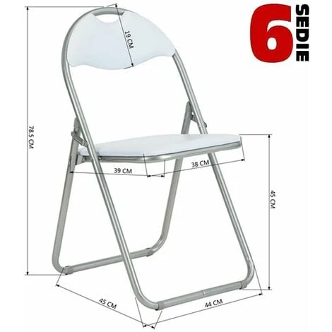 6 x Sedie Imbottite Pieghevoli Colore Bianco Struttura Silver Sedia Metal