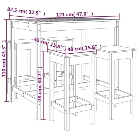 - Dimensioni del tavolo da bar: 121 x 82,5 x 110 cm (L x P x A)