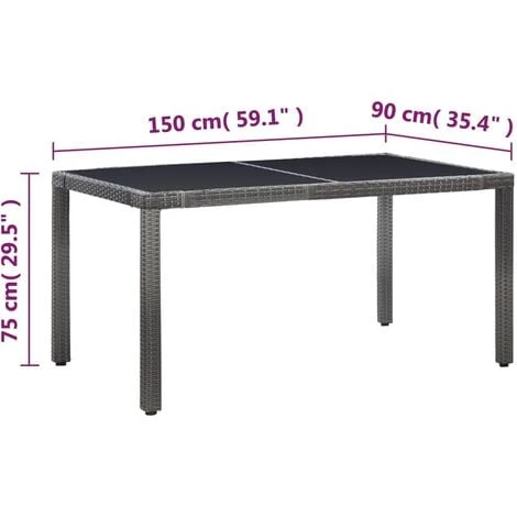 - Dimensioni della tavola: 150 x 90 x 75 cm (L x P x A)