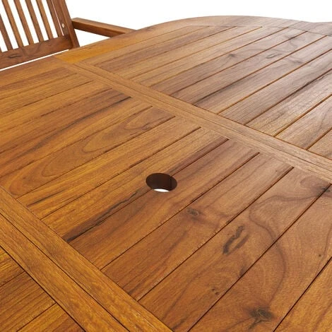 E la comodità? Le sedute e lo schienale delle sedie con braccioli incluse nel set sono realizzate in doghe di legno di acacia che ti assicureranno il giusto mix di ergonomia e design.
