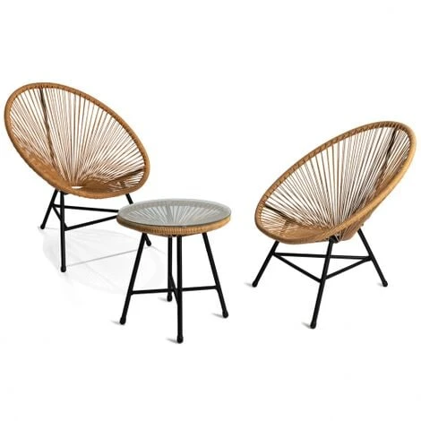 Farà un figurone nel vostro salotto o nella vostra sala da pranzo!Il tavolo ha un piano in vetro temperato rimovibile ed è facile da pulire.Pensate per i momenti di relax, le poltrone L. 70 x L.70 x H. 80 CM sono estremamente confortevoli! Inoltre, il tavolo con piano in vetro temperato rimovibile permette di fare colazione in terrazza al mattino, di sedersi a leggere nel pomeriggio o di condividere un momento di convivialità la sera.Il tavolo, realizzato in acciaio da 16/19 mm e dotato di 3 gambe che sostengono la seduta in corda di plastica, resiste al sole e alle intemperie.Sarà perfetto per una serata rilassante in giardino.Questo set di mobili da giardino può essere facilmente pulito in pochi secondi per permettervi di godervi ancora di più il vostro salotto all’aperto.Sarà perfetto in salotto o in ufficio per un bel look retrò.Farà un figurone nel vostro salotto o nel vostro ufficio!Dimensioni del set di mobili da giardino Colore rattan- Dimensioni della poltrona: Lunghezza 70cm x Larghezza 70cm x Altezza 80cm- Dimensioni dello schienale: altezza 59 cm- Dimensioni del sedile: larghezza 40 x altezza 41,5 cm- Dimensioni del tavolo: diametro 45 x altezza 46,5 CM- Spessore del piano del tavolo in vetro temperato: 5 MM- Struttura in acciaio 16/19 MM- Sedile e schienale in plasticaScoprite anche i nostri mobili da giardino disponibili sul nostro negozio online!