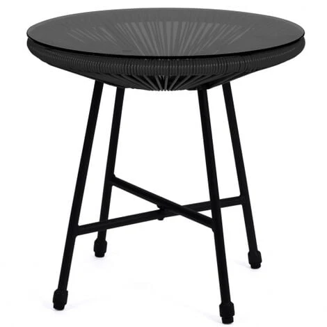 Farà un figurone nel vostro salotto o nella vostra sala da pranzo!Il tavolo ha un piano in vetro temperato rimovibile ed è facile da pulire.Pensate per i momenti di relax, le poltrone L. 70 x L.70 x H. 80 CM sono estremamente confortevoli! Inoltre, il tavolo con piano in vetro temperato rimovibile permette di fare colazione in terrazza al mattino, di sedersi a leggere nel pomeriggio o di condividere un momento di convivialità la sera.Il tavolo, realizzato in acciaio da 16/19 mm e dotato di 3 gambe che sostengono la seduta in corda di plastica, resiste al sole e alle intemperie.Sarà perfetto per una serata rilassante in giardino.Questo set di mobili da giardino può essere facilmente pulito in pochi secondi per permettervi di godervi ancora di più il vostro salotto all’aperto.Sarà perfetto in salotto o in ufficio per un bel look retrò.Farà un figurone nel vostro salotto o nel vostro ufficio!Dimensioni dei mobili da giardino in plastica nera- Dimensioni di una poltrona: Lunghezza 70 cm x Larghezza 70 CM x Altezza 80 CM- Dimensioni dello schienale: altezza 59 cm- Dimensioni del sedile: larghezza 40 x altezza 41,5 cm- Dimensioni del tavolo: diametro 45 x altezza 46,5 CM- Spessore del piano in vetro temperato: 5 MM- Struttura in acciaio 16/19 MM- Sedile e schienale in plastica