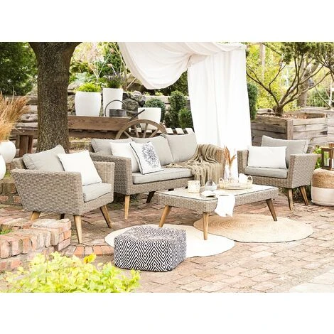Caratteristiche chiave: Materiali resistenti alle intemperie, Estremamente durevole, Resistenza UV 4 (ISO 105-B05), Cuscini sfoderabili per una facile pulizia, Robusto piano in vetro temperato