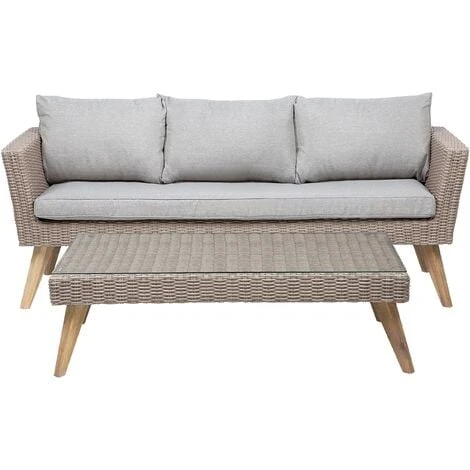 L`offerta include: 1 x Divano 3 posti, 2 x Poltrone, 1 x Tavolino da caffè, 3 x Cuscino seduta, 5 x Cuscino schienale