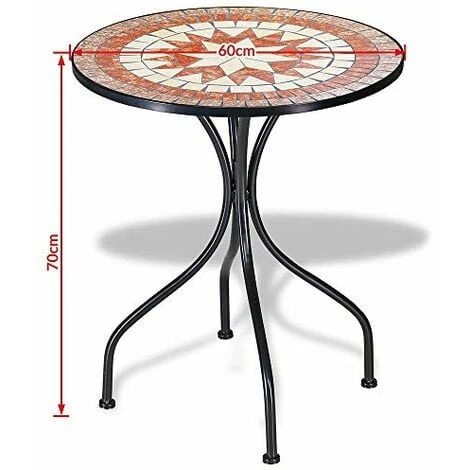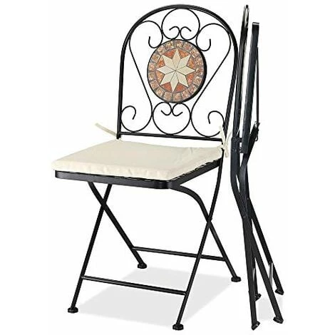 1 x Set Tavolo + Sedie Pieghevoli Mosaico Arredo Esterno Giardino Metall Con Cuscino