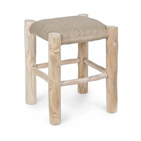 La struttura è in rami di legno di teak con finitura naturale, mentre la seduta è imbottita e rivestita in juta.
