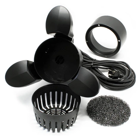 Tre corpi fluttuanti mantengono il cesto di aspirazione esattamente sulla superficie e compensano le possibili variazioni del livello dell’acqua, dovuta ad esempio all’evaporazione.