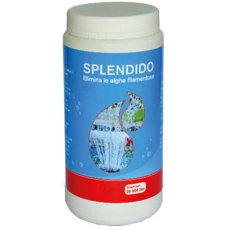 Ideale per chi possiede una piscina, uno dei migliori prodotti anti-alghe sul mercato internazionale. ”Splendido Antialghe” ridona in maniera naturale splendore, bellezza e vitalità al tuo laghetto, prevenendo, controllando, e curando la formazione di alghe unicellulari e filamentose su laghetti e cascate, mantenendo l’acqua chiara e limpida. Prodotto naturale a base di minerali (si può inserire anche in presenza di pesci, tartarughe e piante da laghetto), deve essere regolarmente usato ogni 15 giorni.