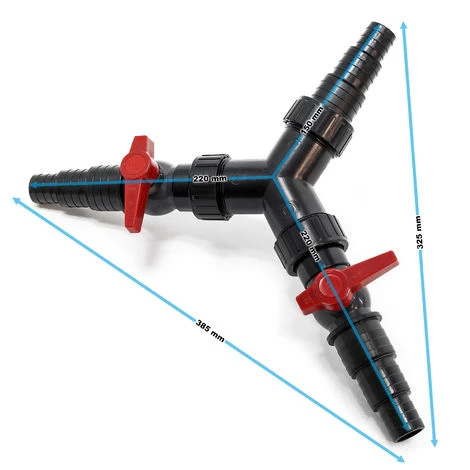 Distributore a Y 25/32/38 mm 2 rubinetti chiusura per regolare flusso