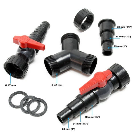 | Raccordement de tuyau Ø / Pouce | 3 x 25mm (1 Zoll) , 3 x 32mm (1 1/4 Zoll), 3 x 38mm (1 1/2 Zoll) |
