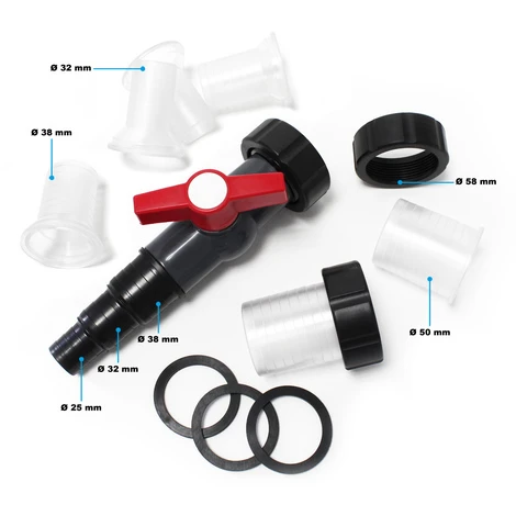 | Raccordement de tuyau Ø / Pouce | 20mm – 38mm (3/4 Zoll – 1 1/2 Zoll) |