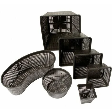 Vasi per piante da laghetto e piante ossigenanti. Questi vasi sono a maglia fine e possono essere riempiti con del terriccio per laghetti, senza perdite di terriccio.