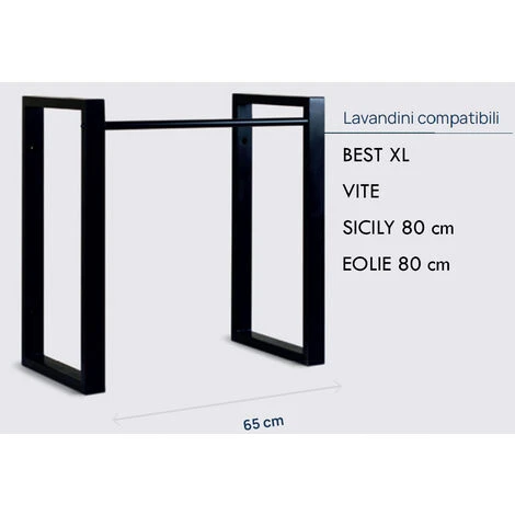 Come questo supporto in acciaio zincato verniciato nero ottimo per l’istallazione da appoggio degli acquai da esterno collezione Best XL, Eolie da 80 cm, Sicily da 80 cm e Vite. Perfetto nel caso in cui non sia possibile installare i lavabi sospesi, con questo supporto per lavabo l’installazione sarà ancora più semplice. Questo sostegno è inoltre dotato di barra portasciugamani.