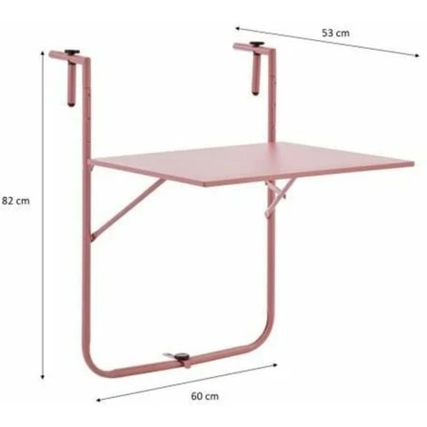 Tavolo da balcone pieghevole in acciaio – 60 x 78 x 86-101 cm – rosa
