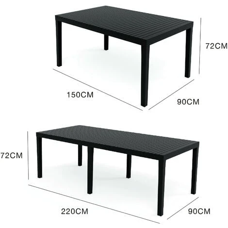 STRUTTURA E UTILIZZO – Tavolo outdoor con struttura resistente in plastica rinforzata – dotato di allunga centrale di 70 cm e di 2 gambe aggiuntive che ne garantiscono la stabilità – Prodotto con finitura con effetto doghe, che ne garantisce la comodità e lo stile – Prodotto perfetto per arredare elegantemente il tuo spazio outdoor, giardino, balcone o veranda – Prodotto versatile che può essere abbinato a vari tipi di sedie, utilizzabile anche all’interno- Prodotto salvaspazio ideale per ospitare fino a 10 persone per pranzo.