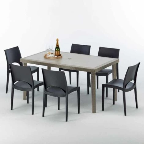 Set Marion comprensivo di tavolo rettangolare beige 150×90 cm e 6 sedie della linea Grand Soleil.