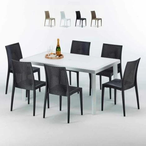 Set SummerLIFE comprensivo di tavolo rettangolare bianco 150×90 cm e 6 sedie Bistrot della linea Grand Soleil.