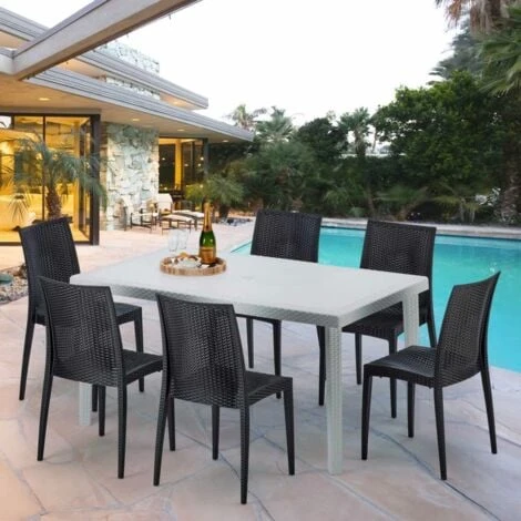 Il set SummerLIFE formato da tavolo e 6 sedie è ideale per arredare interni dei locali pubblici come bar, ristoranti, birrerie o abitazioni private.