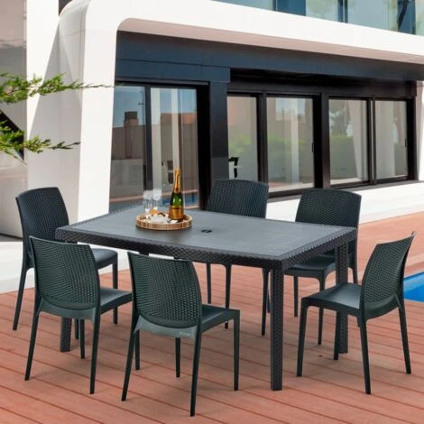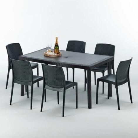 Set Enjoy comprensivo di tavolo rettangolare nero 150×90 cm e 6 sedie della linea Grand Soleil.
