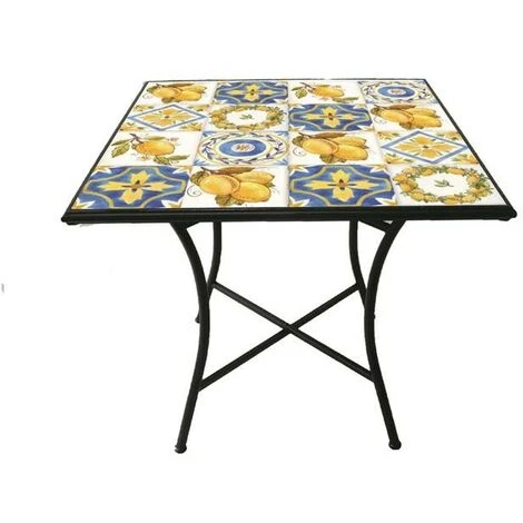 Tavolo Tuscany in ferro battuto e mosaico. 70x70x75 cm