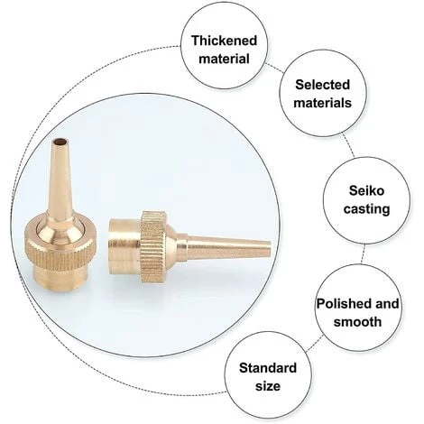 Materiale in ottone di alta qualità: il materiale in ottone può prevenire efficacemente la ruggine e la corrosione, è durevole e non è una scelta difficile per gli ugelli delle fontane. Ugello regolabile: è possibile regolare la direzione del flusso d’acqua dell’ugello della fontana in base alle proprie esigenze per un servizio migliore. .Installazione semplice: con un’interfaccia filettata, puoi facilmente collegarti saldamente al tubo e l’interfaccia filettata può evitare il problema delle perdite d’acqua. .Ampia gamma di applicazioni: puoi usarlo in fontane, giardini, stagni per pesci e stagni e puoi creare un ambiente ricco di ossigeno, che è una buona scelta per i tuoi lavori di giardinaggio. .Dati sulle dimensioni del prodotto: circa 1,14 di diametro, 2,54 di lunghezza. Diametro interno: 0,20 e 0,75. Scegli la taglia giusta per lavorare meglio. .