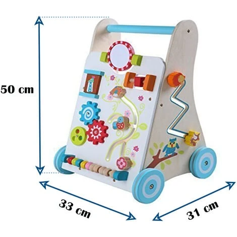 - La parete frontale contiene anche lo specchio rotante, abaco, “finestra magica” e molto altri “giochi di arcade” tendendo allo sviluppo della destrezza manuale del vostro bambino.