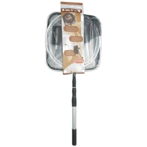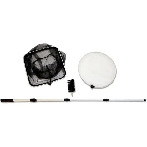 Il set per manutenzione Vijvertechniek 3-in-1 con maniglia telescopica contiene 3 accessori fondamentali per lo stagno per mantenere pulito il tuo stagno: una rete rotonda con maglia fine, una rete quadrata con maglia grossolana e una spazzola di alghe. La maniglia telescopica leggera in alluminio è regolabile da 51 cm a 151 cm.