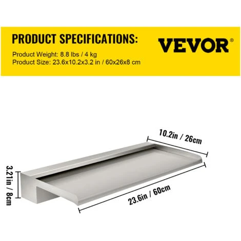 - Dimensioni della Fontana della Piscina: Dimensioni della fontana della piscina a cascata: 23,6 x 13 x 3,2 pollici / 60 x 33 x 8 cm. Diametro ingresso acqua: 1,46 pollici / 37 mm. Larghezza del flusso d’acqua: 23,6 pollici / 60 cm.