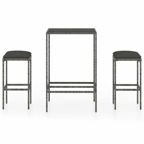 Questo elegante set bar da giardino è un luogo piacevole e confortevole in cui poter trascorrere il tempo libero con la famiglia e gli amici. Questo tavolo è dotato di un telaio in acciaio verniciato a polvere rivestito in rattan PE resistente all’acqua, ciò garantisce anni di utilizzo all’aria aperta. In particolare, il piano del tavolo in vetro temperato lo rende facile da pulire. Gli sgabelli hanno una struttura robusta in acciaio e sono realizzati in rattan PE resistente agli agenti atmosferici, che garantisce stabilità, inoltre sono facili da spostare. I cuscini per i sedili e i poggiapiedi integrati nello sgabello aggiungono ulteriore comfort di seduta. Nota: Al fine di prolungare la vita dei vostri mobili da esterno, consigliamo di pulirli regolarmente e di non lasciarli all’aperto senza protezione quando non vengono utilizzati.Pulizia: Utilizzare una soluzione con sapone delicatoImmagazzinamento: se possibile, conservare gli elementi in un ambiente fresco e asciutto al chiuso. Se il prodotto viene conservato all’aperto, proteggerlo con una copertura impermeabile. Pulire e asciugare l’acqua o la neve in eccesso dalle superfici piane dopo una pioggia o una nevicata. Consentire un’adeguata circolazione dell’aria per evitare danni causati dall’umidità.