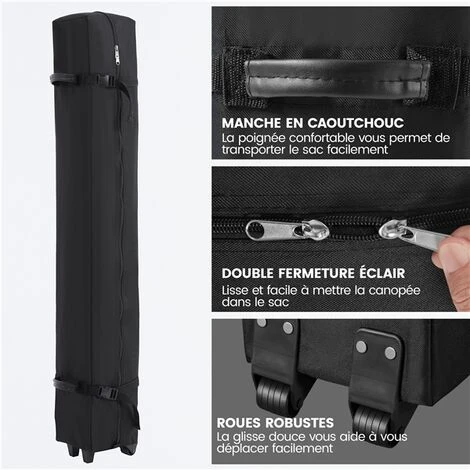 ✔️ Borsa da trasporto: per vostra comodità offriamo uno zaino da trasporto incluso nella confezione con maniglie e rotelle, in modo che gli spostamenti e il trasporto siano facili e senza particolari sforzi. È possibile riporre il gazebo all’interno dello zaino quando non in uso, in questo modo sarà possibile risparmiare spazio.