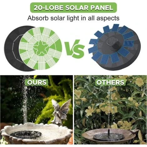 【Multiuso】 La fontana solare è molto adatta per bagni all’aperto: uccelli, acquari, piccoli stagni, piscine, giardini, acqua di circolazione dell’ossigeno e altre occasioni. La fontana decorativa perfettamente funzionante renderà il tuo giardino e cortile più belli e speciali.
