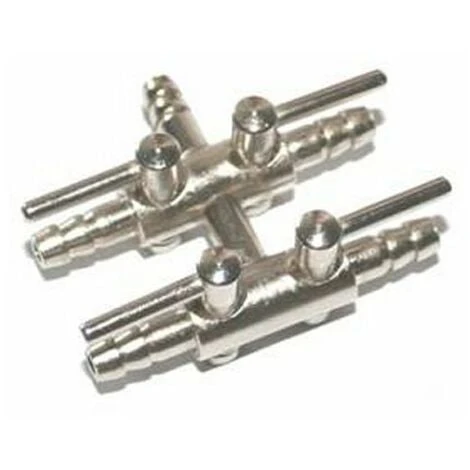 rubinetto aria a quattro uscite con leva di regolazione flusso ottima quando abbiamo più. di una uscita per regolare su vari punti dell’.acquario il flusso d’.acqua. Se la utilizzate per la co2 per posizionare più. di un diffusore sistematela sotto il livello dell’.acqua in modo da verificare possibili perdite di gas (la co2 è. un gas che a differenza dell’.aria passa anche su piccolissimi fori)